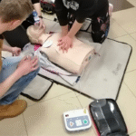 Zajęcia prowadzone były z wykorzystaniem fantomów oraz defibrylatora AED.